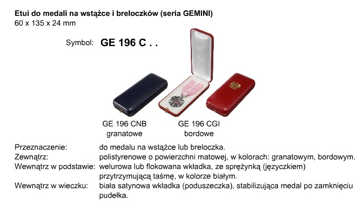 serii GEMINI, do medalu na wstążce lub breloczka w kolorze bordowym |